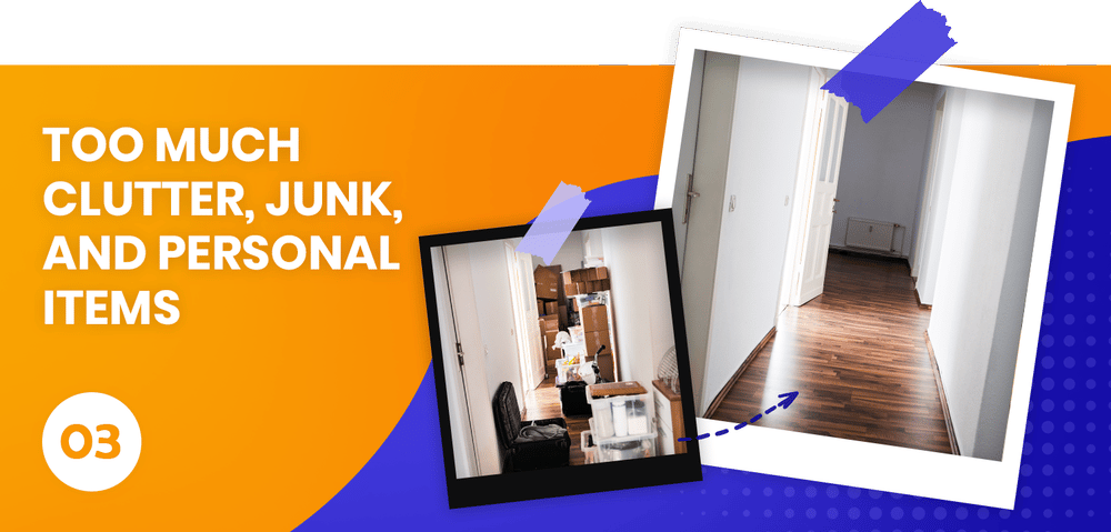 One of the worst kinds of listing photos features a cluttered house. Papers on the side of the refrigerator, groceries and food items on the kitchen counter, unmade beds, clothing on chairs, personal belongings like diplomas and other memorabilia still on display—you name it.